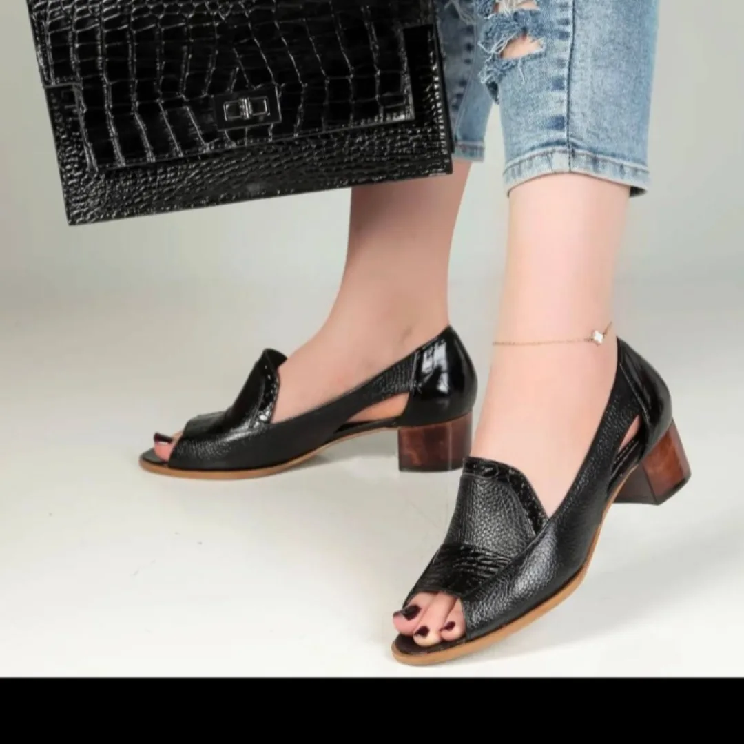 کفش تابستانی تمام چرم طبیعی گاوی مدل الناز پاشنه ۵سانت
