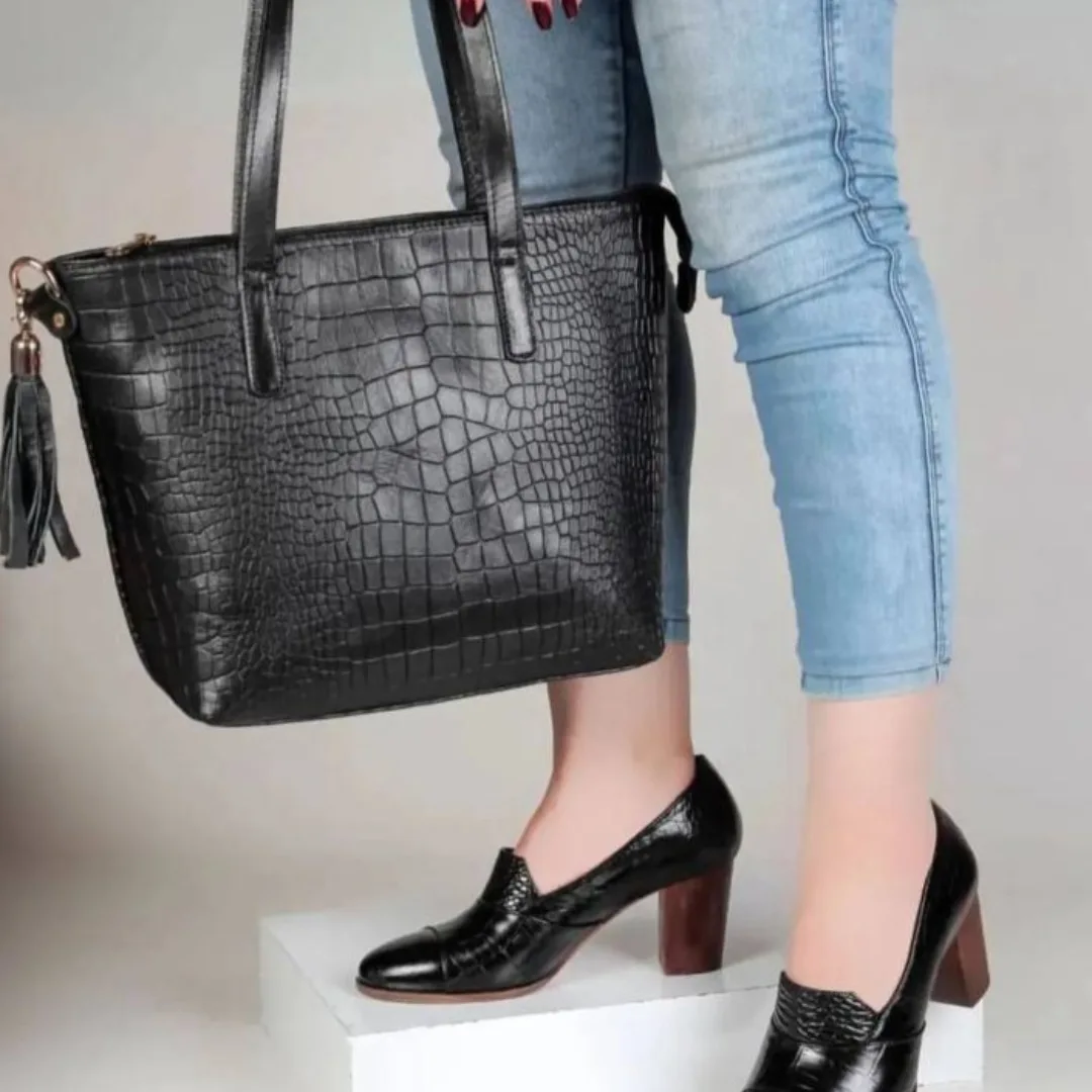 کفش تمام چرم طبیعی گاوی مدل سوگند پاشنه چوب ۵سانت